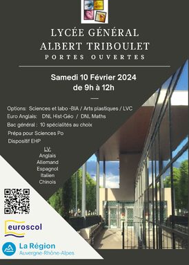 Le lycée Triboulet ouvre ses portes le samedi 10 février 2024, de 9h00 à 12h00.